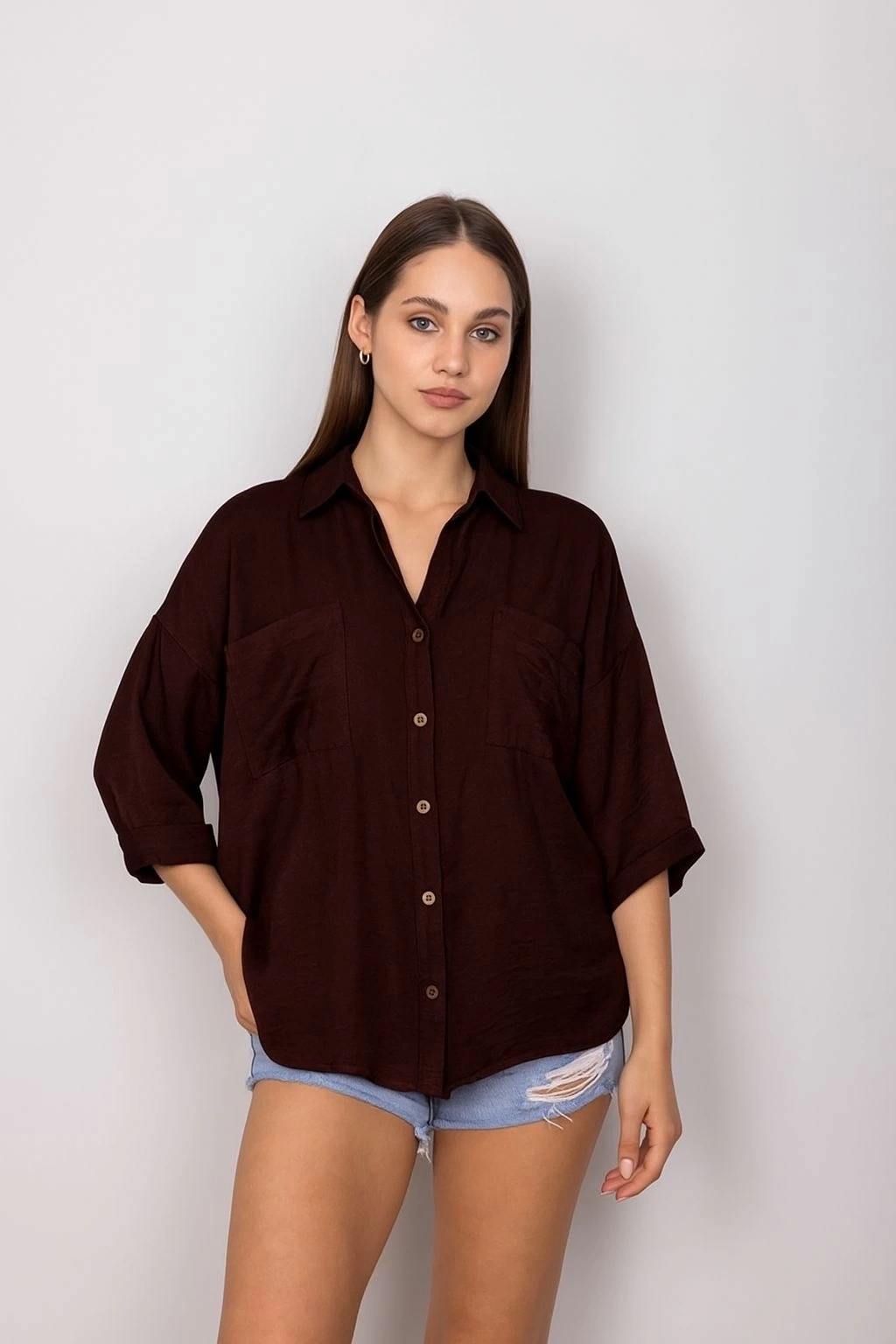 • Cepli salaş gömlek koyu kahve t1010