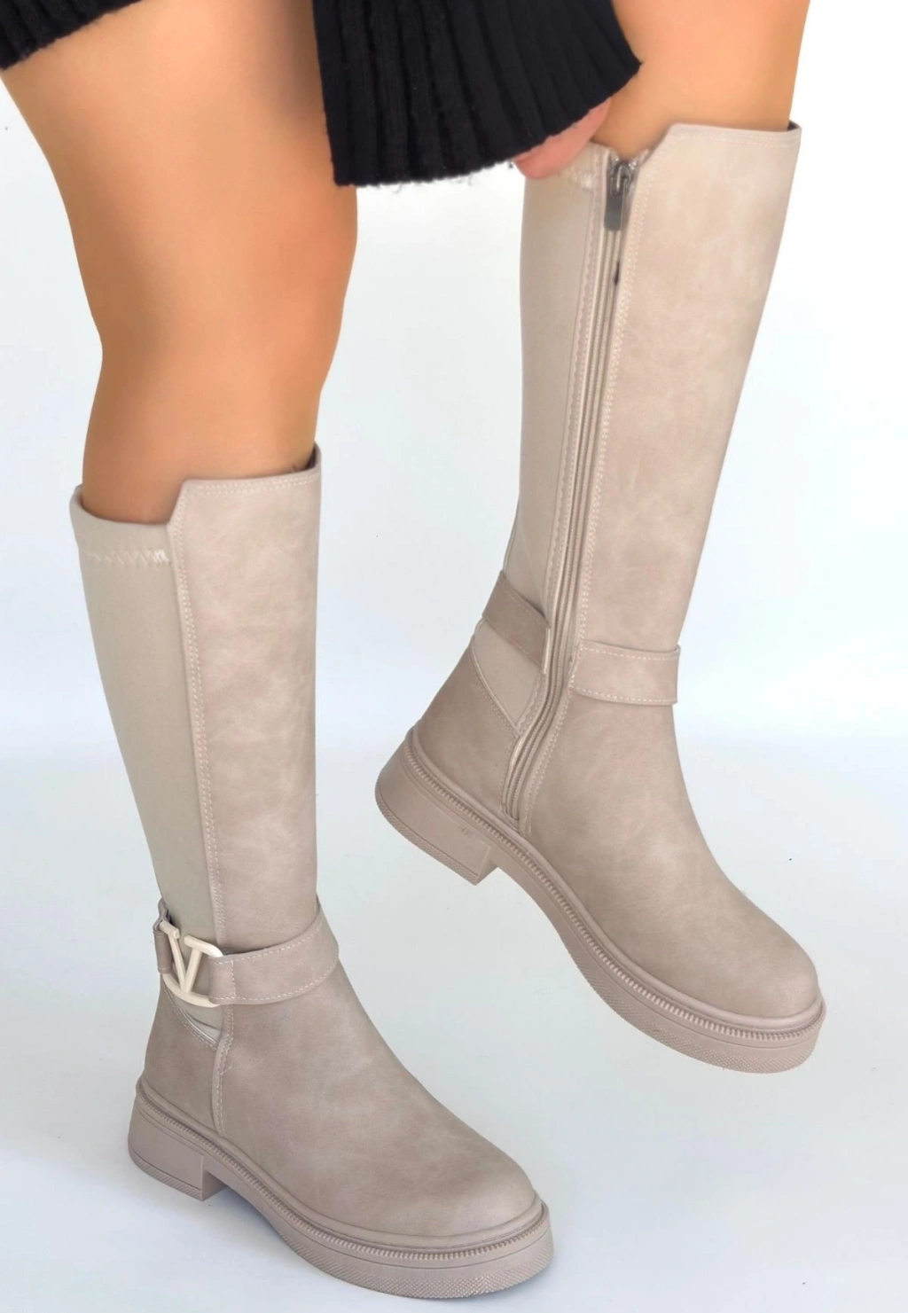 Detay: Topuklu Yandan Fermuarlı Diz Altı Çizme