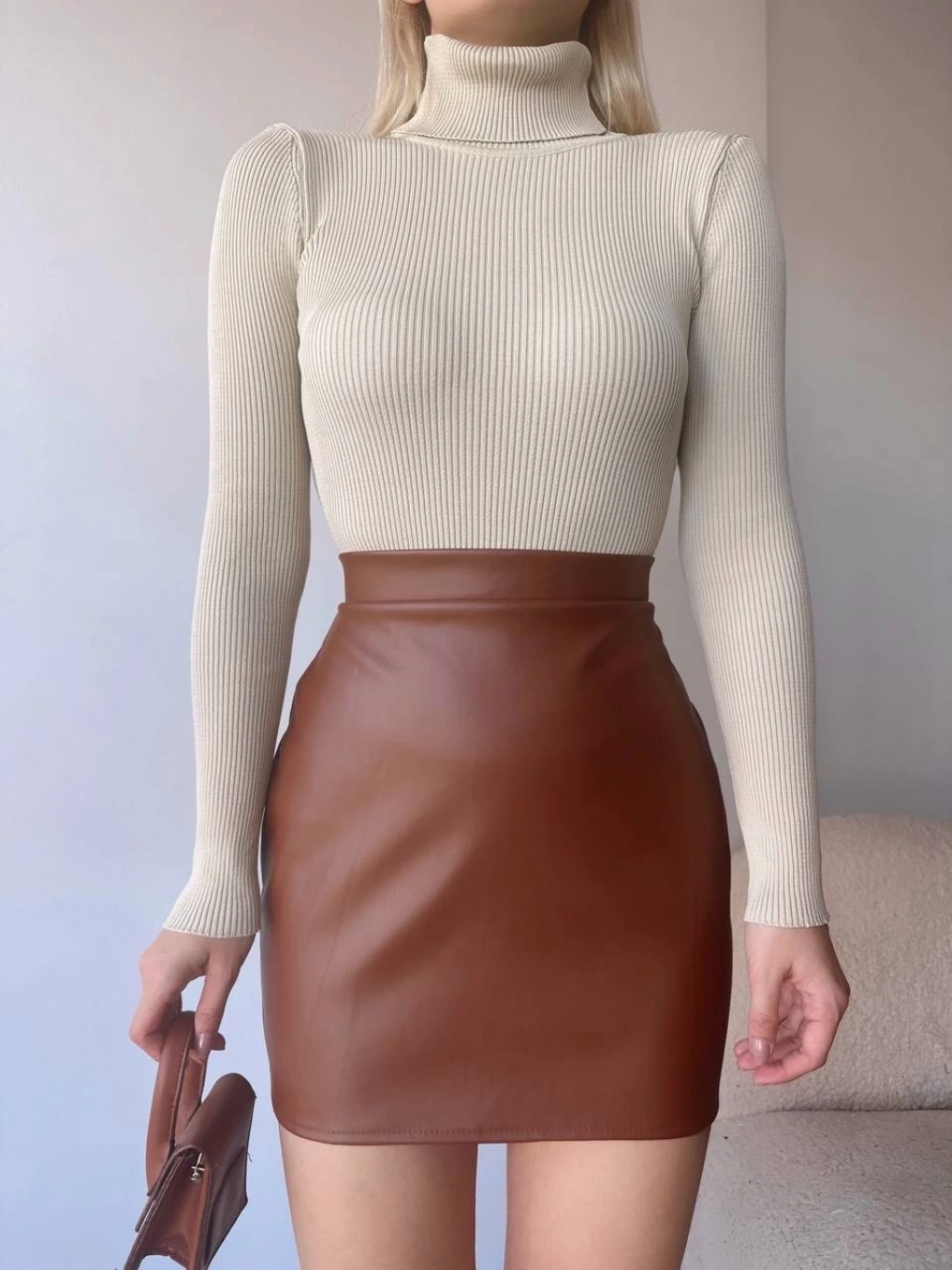 Şıklığı ve zarafeti bir arada sunan Düz Deri Etek Taba H24468, gardırobunuzun vazgeçilmez parçalarından biri olmaya aday. Hem günlük hem de özel günlerde rahatlıkla tercih edebileceğiniz etek, şıklığıyla göz kamaştırıyor.