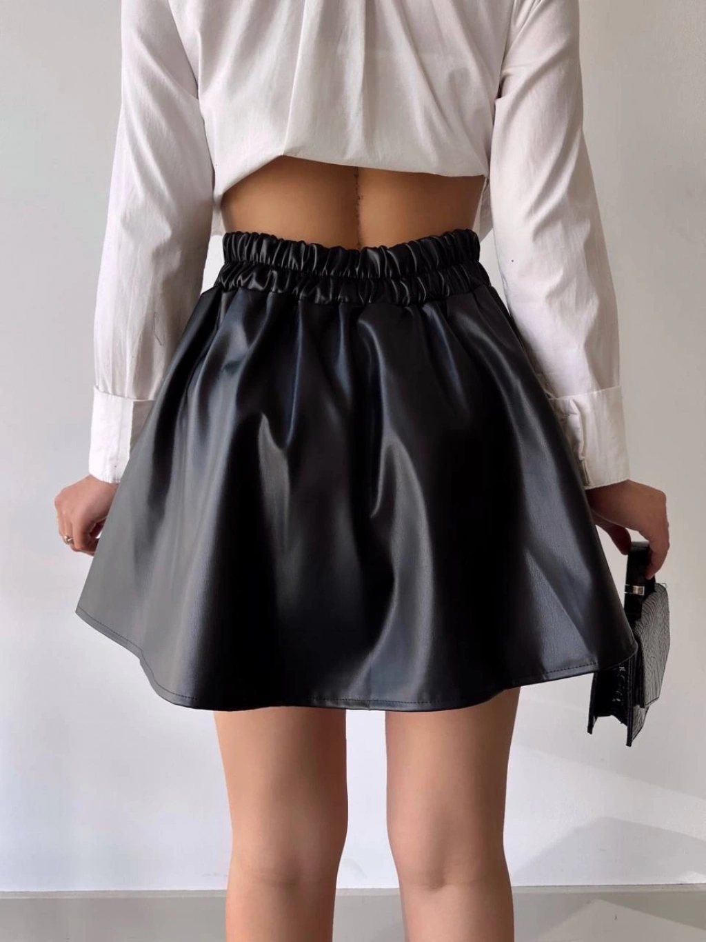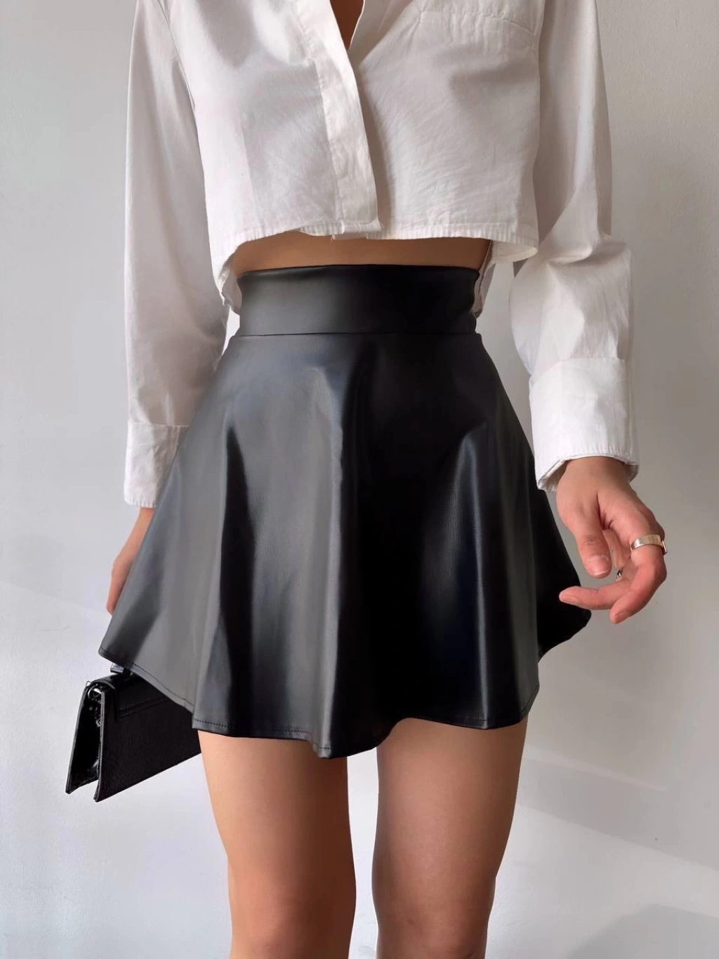Şık ve modern tasarımıyla dikkat çeken Kısa Deri Çan Etek, gardırobunuzun vazgeçilmezi olmaya aday!