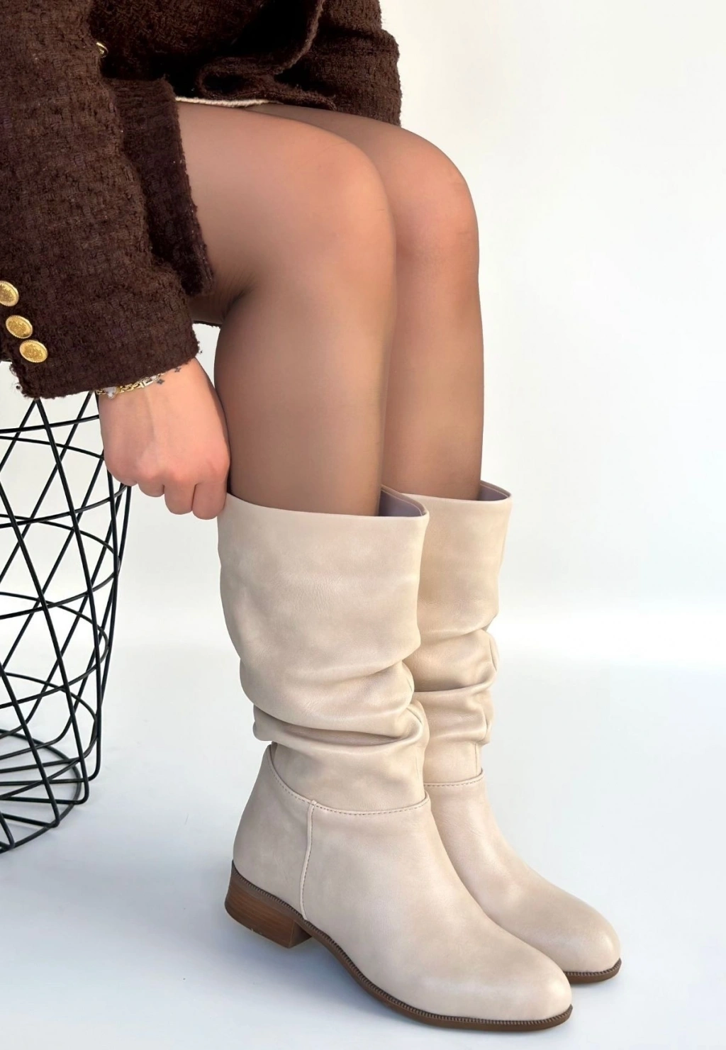 • Plod Bej Cilt Körüklü Çizme