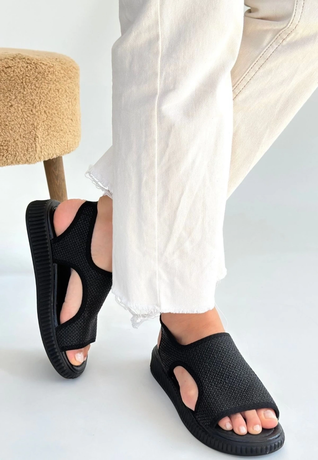 petite ateiler Wayi Siyah Hasır Cilt Sandalet